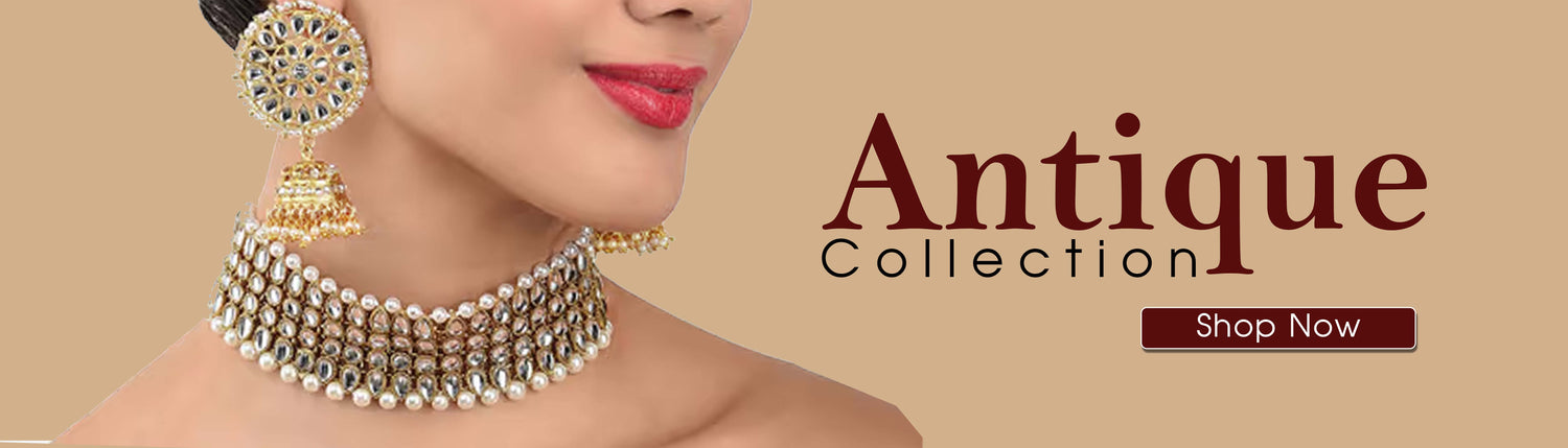 Sale price Rs. 1,930.00The RajyaLakshami Kolhapuri Antique Thushi is a regal masterpiece, exuding heritage and tradition. Crafted with intricate gold detailing, this choker-style necklace showcases fine craftsmanship inspired by royal aesthetics. Adorned with delicate embellishments and a striking central motif, it perfectly complements traditional Maharashtrian attire. The matching earrings add to its grandeur, making it an ideal choice for weddings and festive occasions. A timeless piece that enhances... -