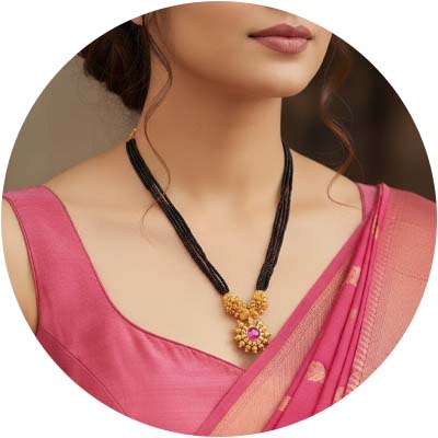 Sale price Rs. 570.00The Pradipta Ruby Stone Short Mangalsutra is a masterpiece of traditional craftsmanship, blending cultural heritage with exquisite artistry. Featuring multiple strands of fine black beads, it is intricately designed to symbolize the sacred bond of marriage. The stunning gold pendant, adorned with a vibrant ruby stone at its center, adds a regal touch, exuding grace and timeless charm. Perfect for both daily wear and special... -