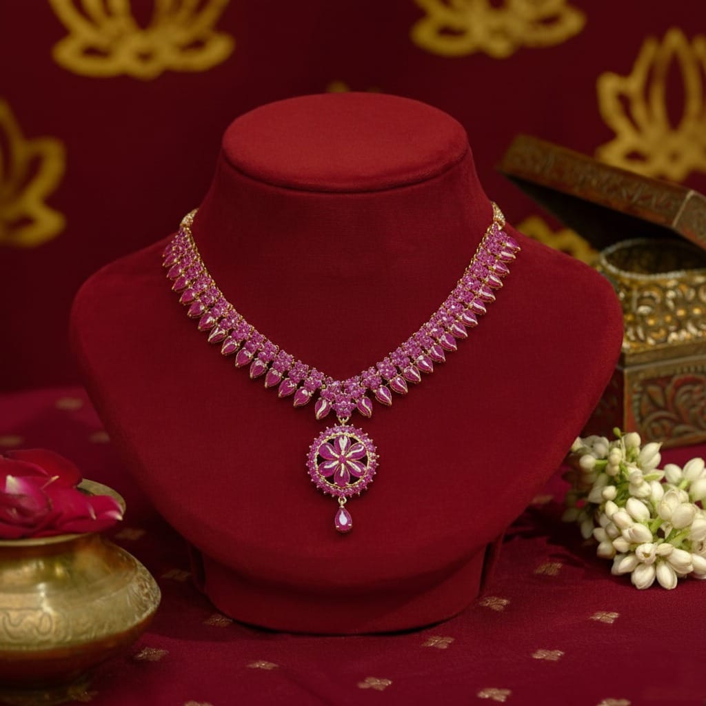 Gajapatishri Necklace A majestic necklace inspired by royal grandeur, crafted with intricate traditional detailing and a graceful finish. Its bold design reflects heritage elegance, making it perfect for festive and ceremonial occasions.