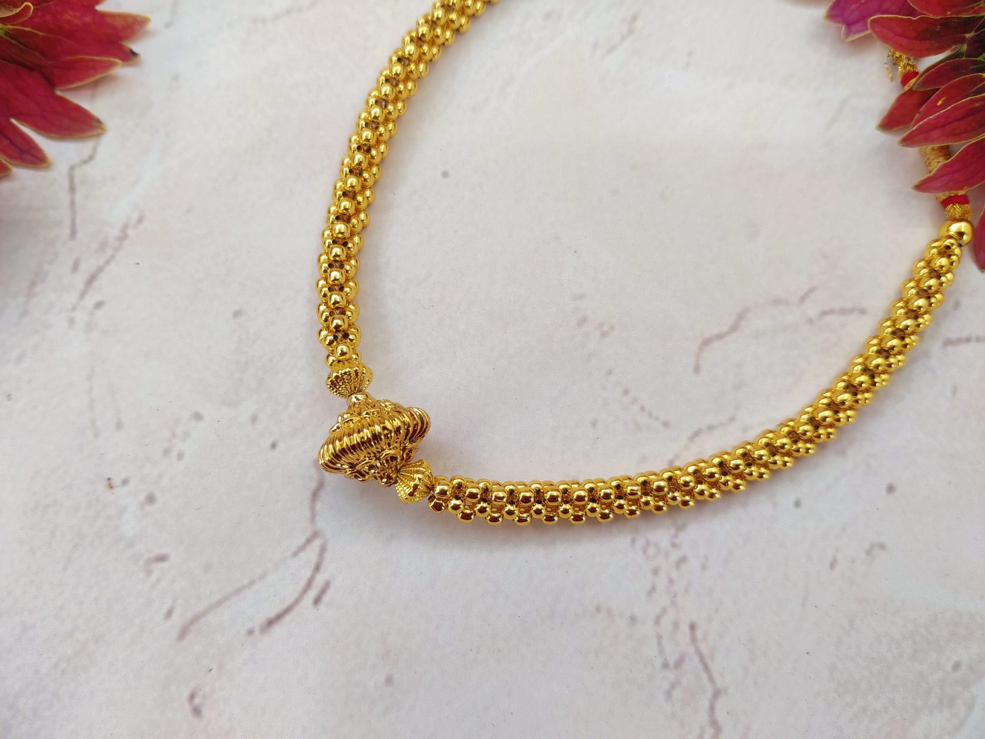 Kolhapuri Javmani Thushi A traditional Kolhapuri Thushi crafted with classic javmani beadwork and fine detailing. Its elegant close-neck design reflects authentic Maharashtrian heritage, making it perfect for festive and cultural occasions.