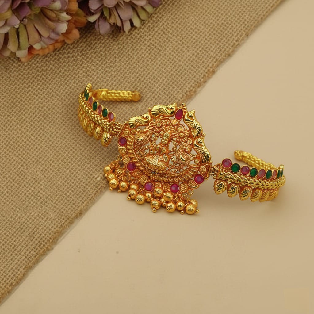 Lakshmivati Antique Bajubandh A beautifully crafted antique-style bajubandh inspired by Goddess Lakshmi, featuring intricate traditional detailing. Its elegant design adds a divine, regal charm to festive and ethnic attire.