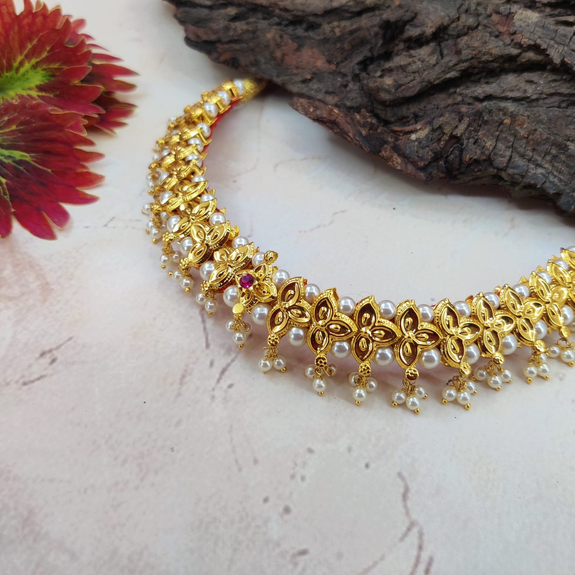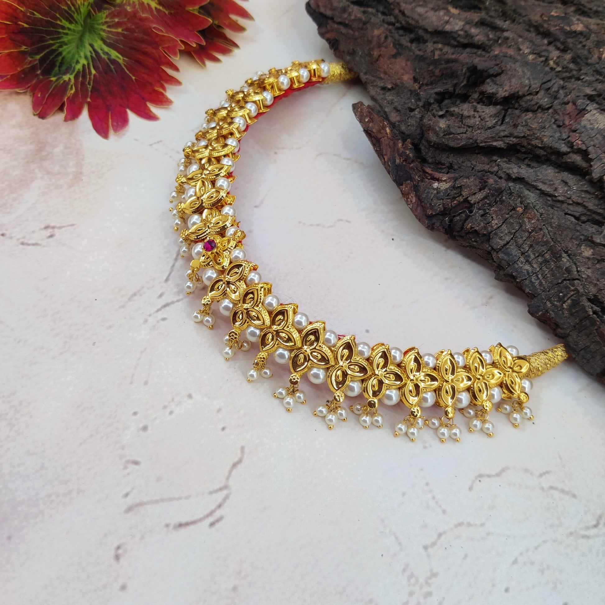 Motidipa Belpantik A delicately crafted belpantik adorned with lustrous moti beads and fine traditional detailing. Its elegant design adds a soft, graceful charm, perfect for festive and ethnic occasions.