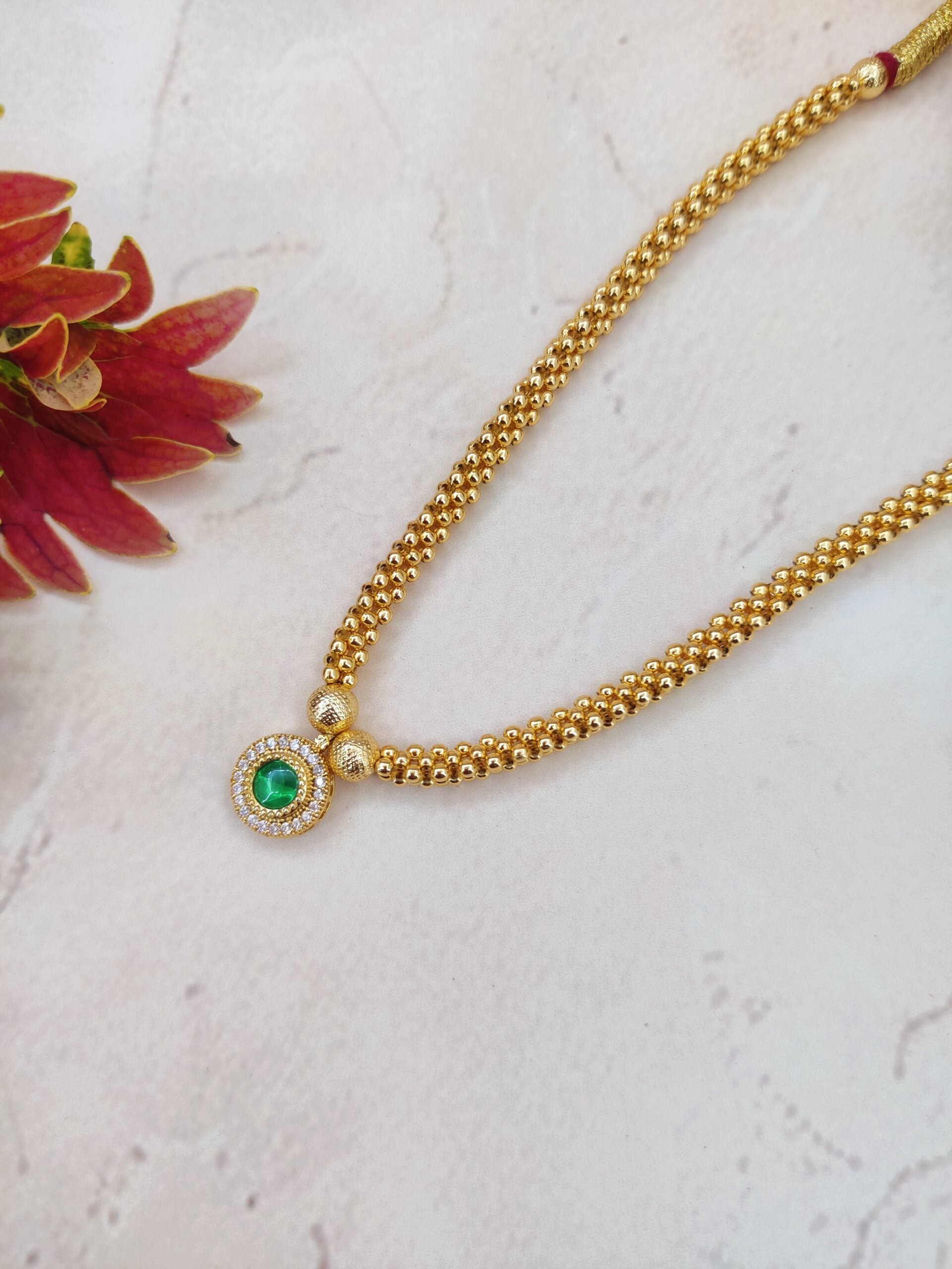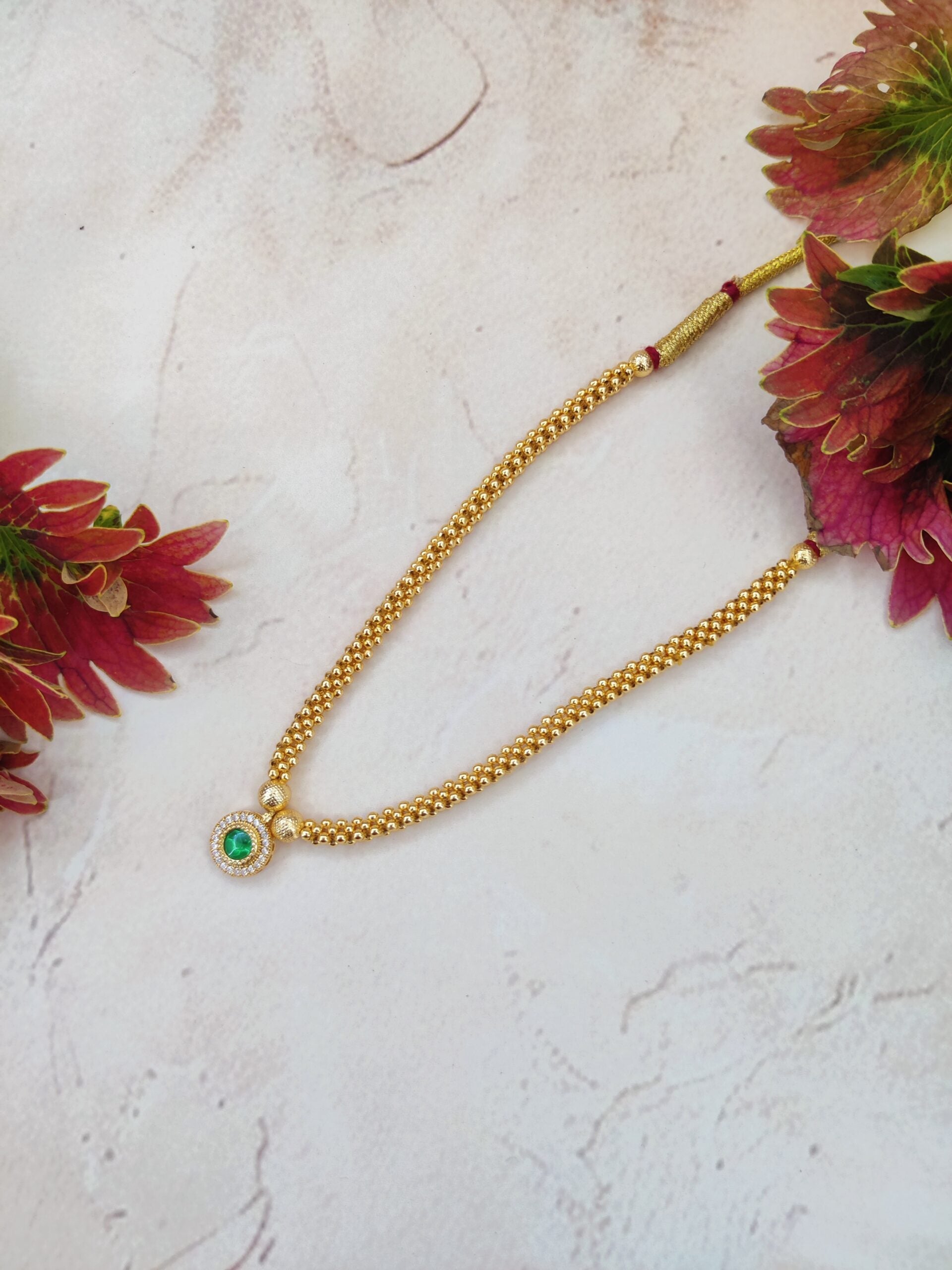 Paithani Kolhapuri Thush A beautifully crafted Kolhapuri Thushi inspired by Paithani elegance, featuring intricate beadwork and traditional detailing. Its rich close-neck design adds a royal Maharashtrian charm, perfect for festive and cultural occasions.