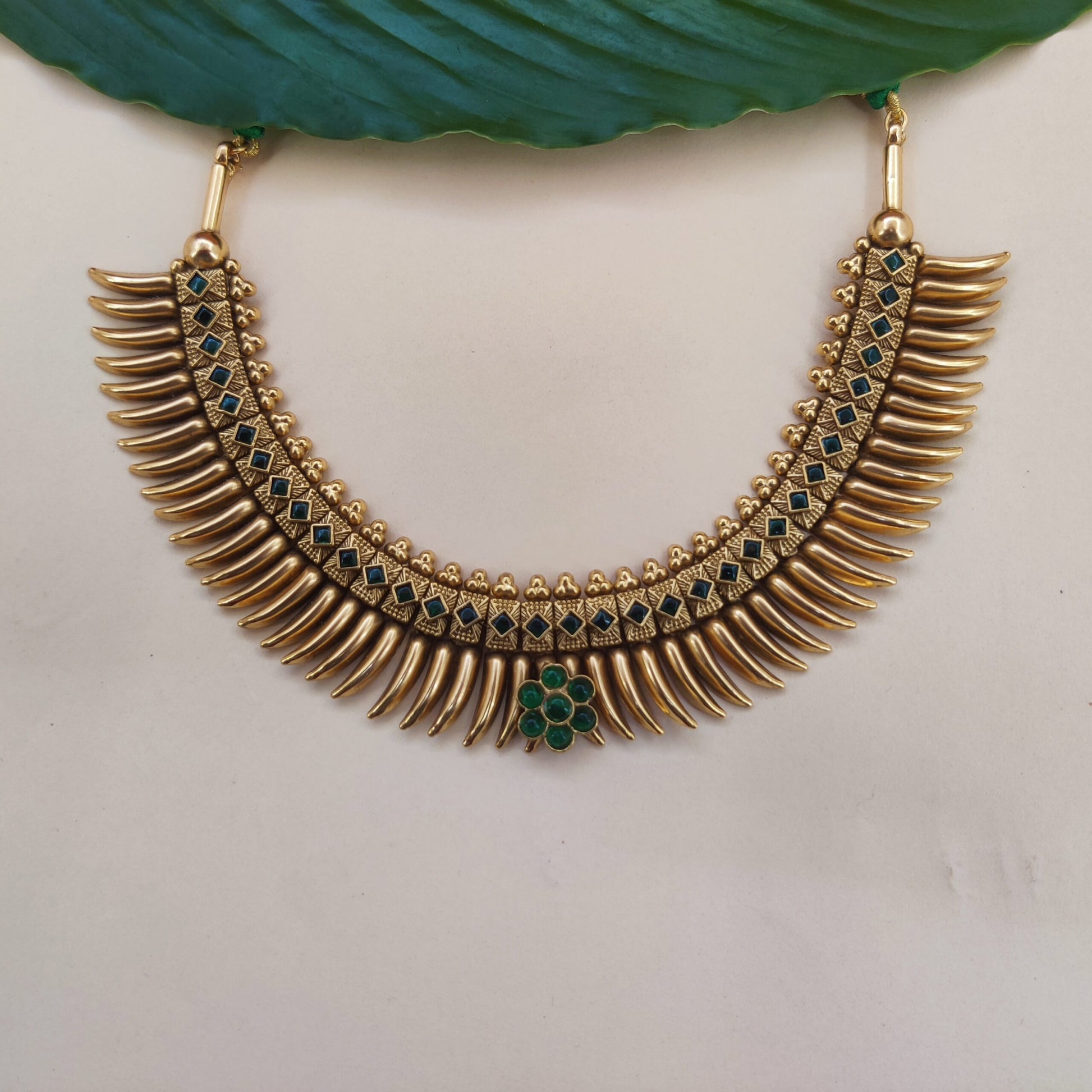 Sarasvati Chafekali Antique Necklace An elegant antique-style necklace inspired by Goddess Sarasvati, featuring intricate chafekali work and traditional detailing. Its timeless design adds a cultural and festive charm to ethnic attire.