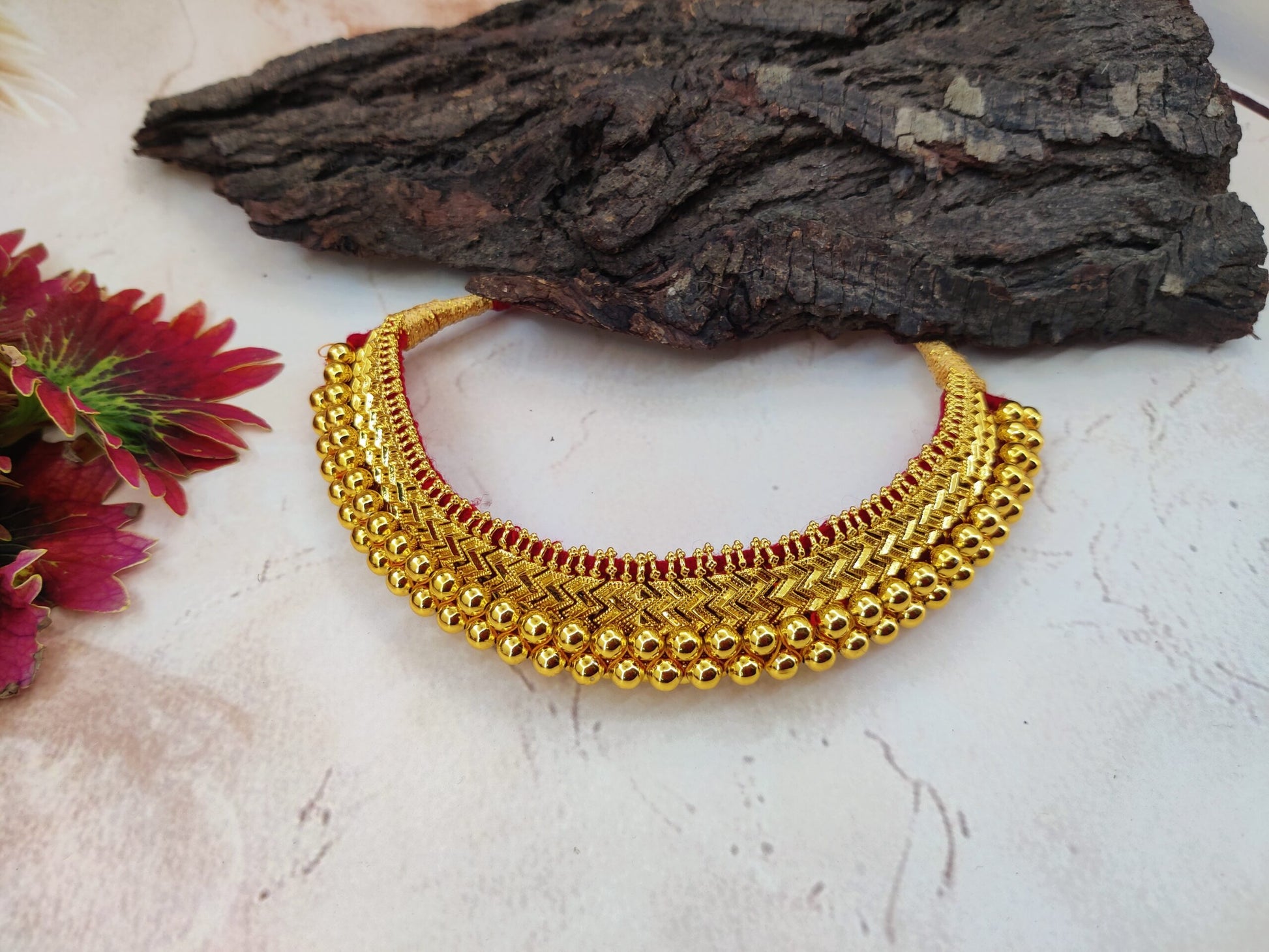 Soubhagyavti Kolhapuri Vajratik A traditionally crafted Kolhapuri Vajratik featuring intricate detailing and classic beadwork. Its elegant design symbolizes prosperity and grace, adding a rich Maharashtrian charm to festive and auspicious occasions.
