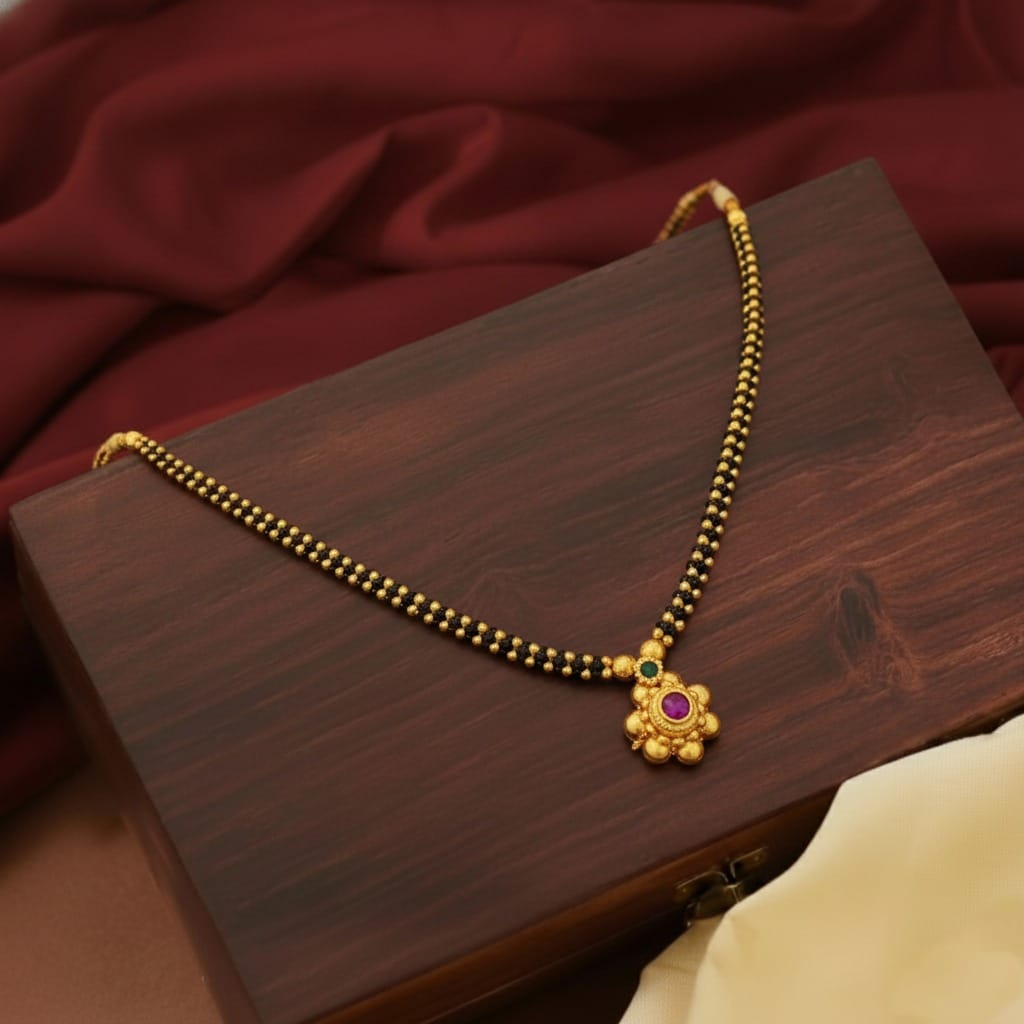 Nakshtra Kolhapuri Thushi A beautifully crafted Kolhapuri Thushi inspired by star-like elegance, featuring intricate beadwork and traditional detailing. Its classic close-neck design adds a radiant and timeless charm to any ethnic outfit.
